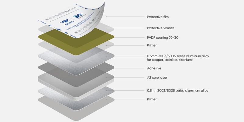 Panel Master Apex Series is one of our product series which is produced by composing two smooth 0.5mm thick aluminum (or other metal) sheets to a solid non-combustible or fire-retardant core through a high-temperature process. It is specifically designed to allow architects and designers to use ACM as the preferred material for building fa?ades while meeting the fire performance requirements outlined in the International Building Code (IBC).